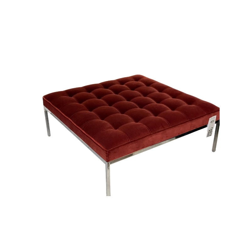 Dimensions : L.96 × P.96 × H.35 cm Revêtement : tissu Eva, couleur Cayenne Base : chromée polie Disponible, vendue en l’état Livraison gratuite au Luxembourg hors réservation de lift.